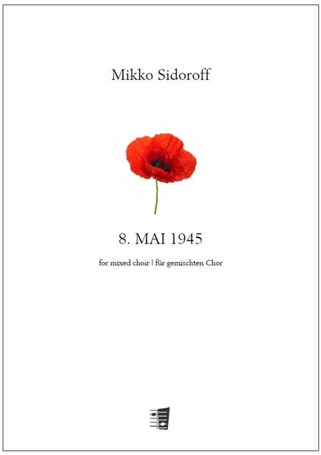 The date of Mikko Sidoroff's work for mixed choir, 8. Mai 1945 (May 8, 1945) holds great significance for the entire world, perhaps even most for Germany. On this day, Nazi Germany surrendered unconditionally to the Allies led by Britain, the Soviet Union, France, and the United States, by signing the surrender document. The work draws on several texts: John McCrae's In Flanders Fields (1915) actually relates to World War I. Its message, however, is universal: although the poem historically refers to the battles in Flanders, Bel-gium, it reflects all war-torn battlefields worldwide. "Requiem aeternam dona eis, Domine" is from the Catholic Requiem Mass, which honors our deceased fellow humans. The third element is a recitation by a tenor soloist from the aforementioned surrender document, situating the work within a historical time-line. Additionally, the piece includes verses from the prophet Micah's book, where the message of peace is quite clear: "They shall beat their swords into plowshares, and their spears into pruning hooks."